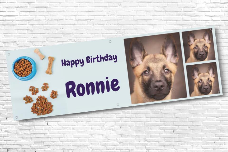 Blue Personalised Dog Birthday Banner with 3 Photos