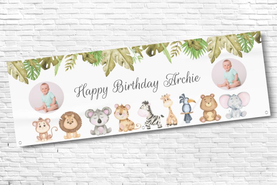 Boy's and Girl's Personalised Wild Animals Twin Photo Birthday Banner