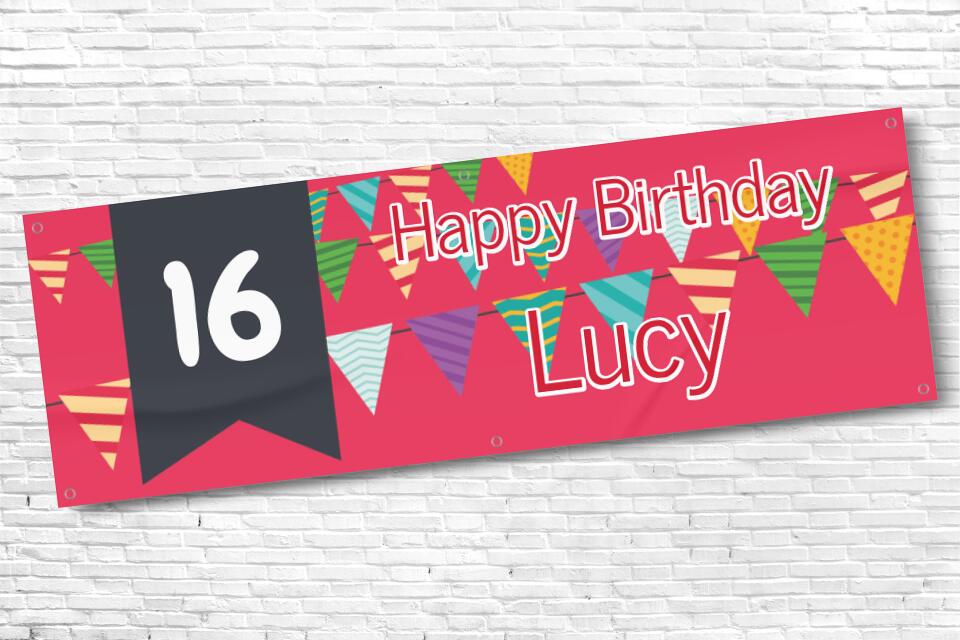 Girl's Personalised Red Bunting 16th Milestone Birthday Banner
