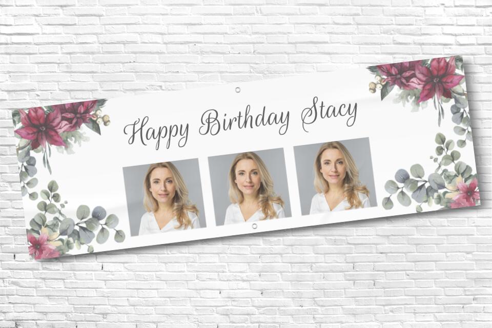 Ladies and Girl's Personalised Floral Three Photo Birthday Banner