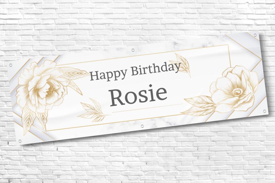 Ladies and Girl's Personalised Gold Line Floral Birthday Banner