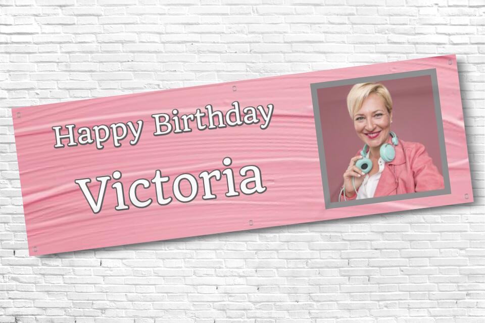 Ladies and Girl's Personalised Pink Paint Photo Birthday Banner