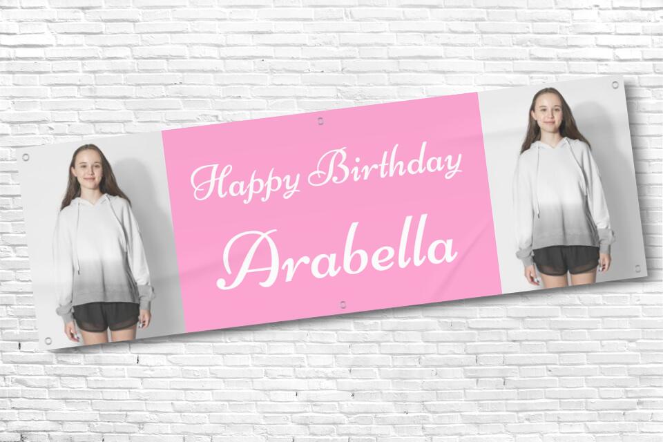 Ladies and Girl's Personalised Pink Twin Photo Birthday Banner