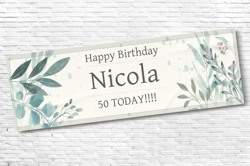 Ladies Personalised Green Floral 50th Milestone Birthday Banner