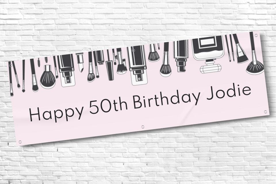 Ladies Personalised Makeup 50th Milestone Birthday Banner