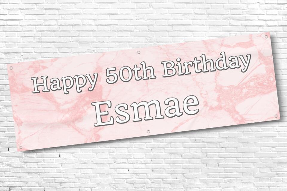 Ladies Personalised Pink Marble 50th Milestone Birthday Banner