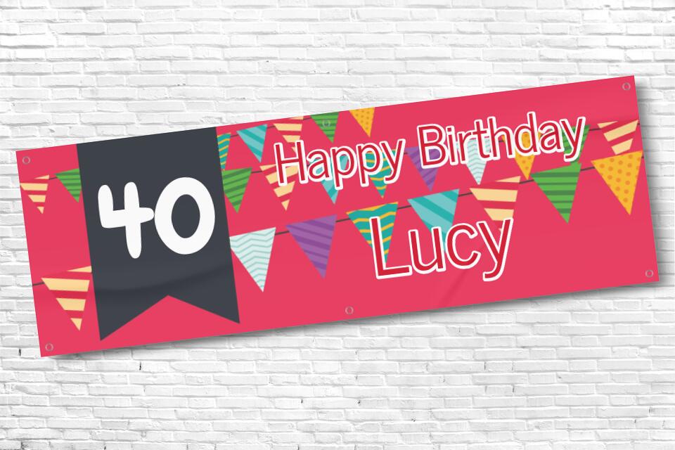 Ladies Personalised Red Bunting 40th Milestone Birthday Banner
