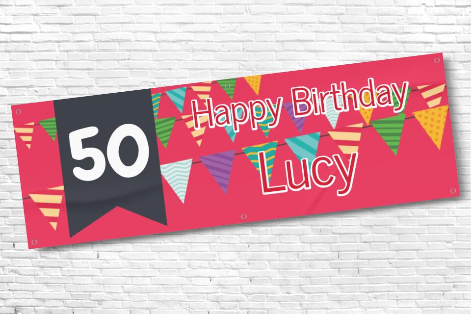 Ladies Personalised Red Bunting 50th Milestone Birthday Banner