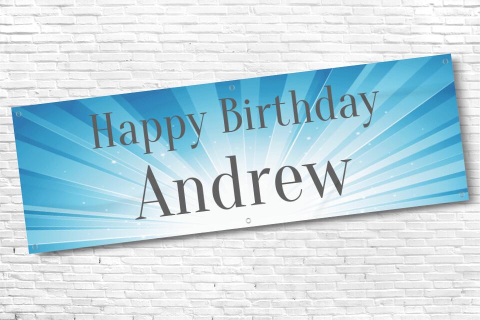 Men's and Boy's Personalised Bright Blue Beam Birthday Banner