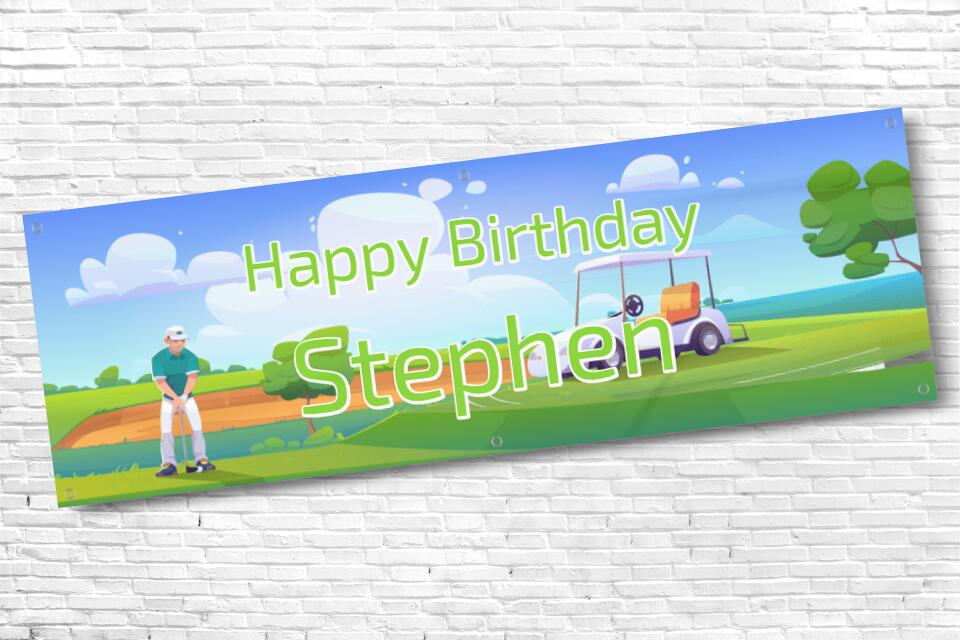 Men's and Boy's Personalised Cartoon Golf Cart Birthday Banner