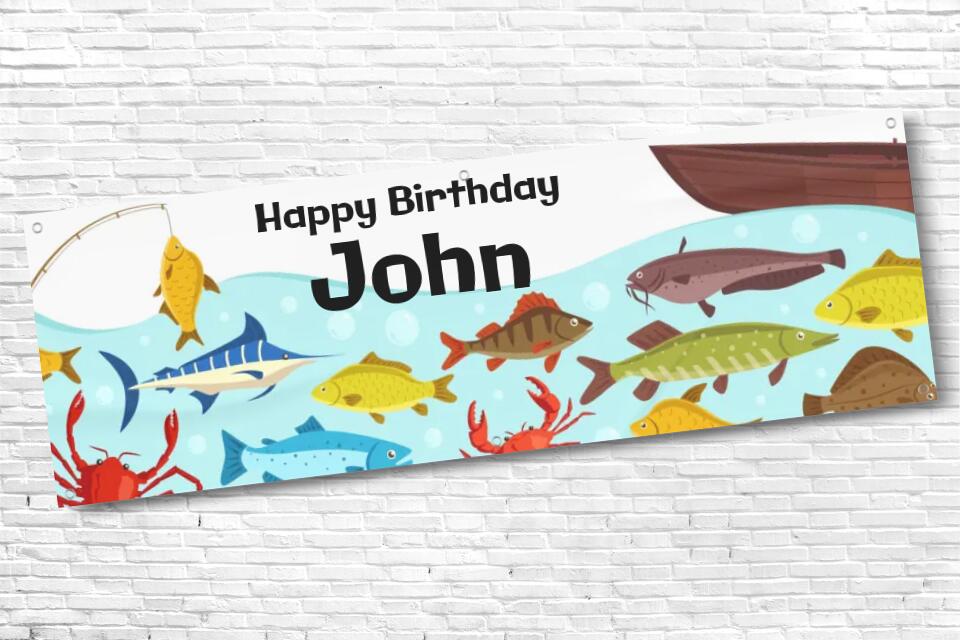 Mens and Boys Personalised Fishing Birthday Banner