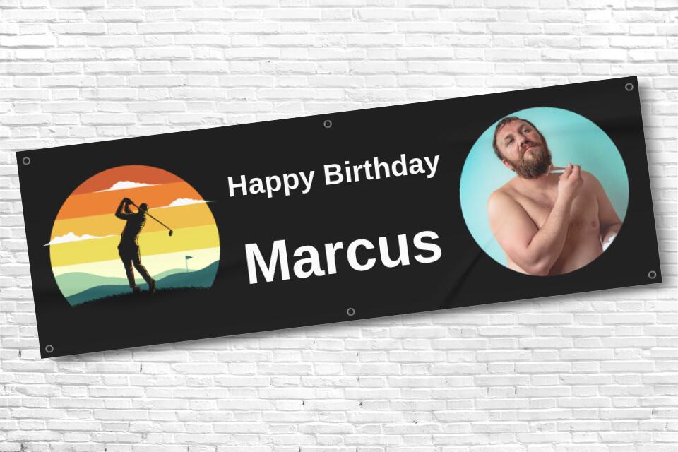 Men's and Boy's Personalised Gold Sunset Photo Birthday Banner