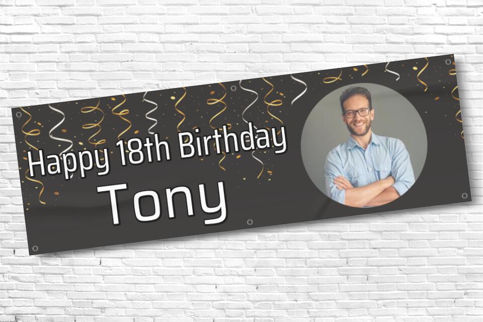 Men's Personalised Black Streamer Photo 18th Milestone Birthday Banner