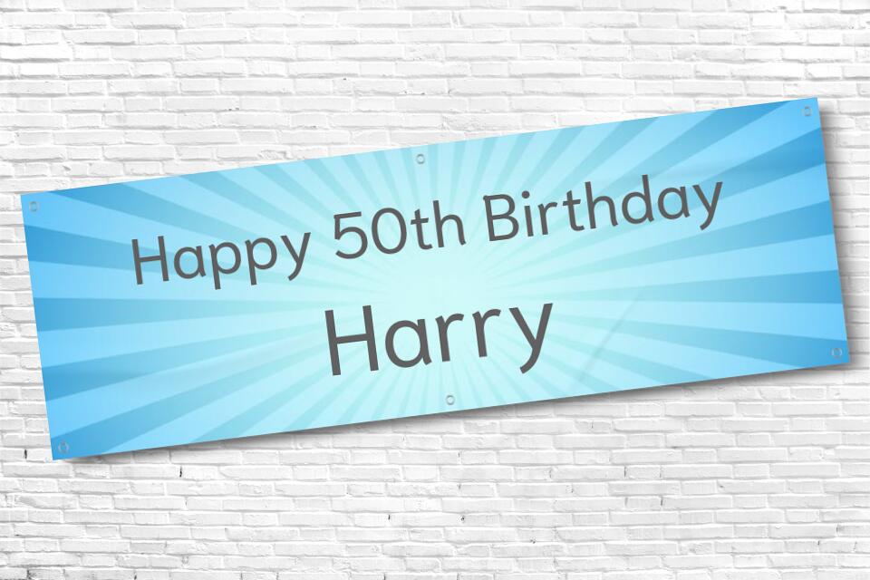 Men's Personalised Blue Beam 50th Milestone Birthday Banner