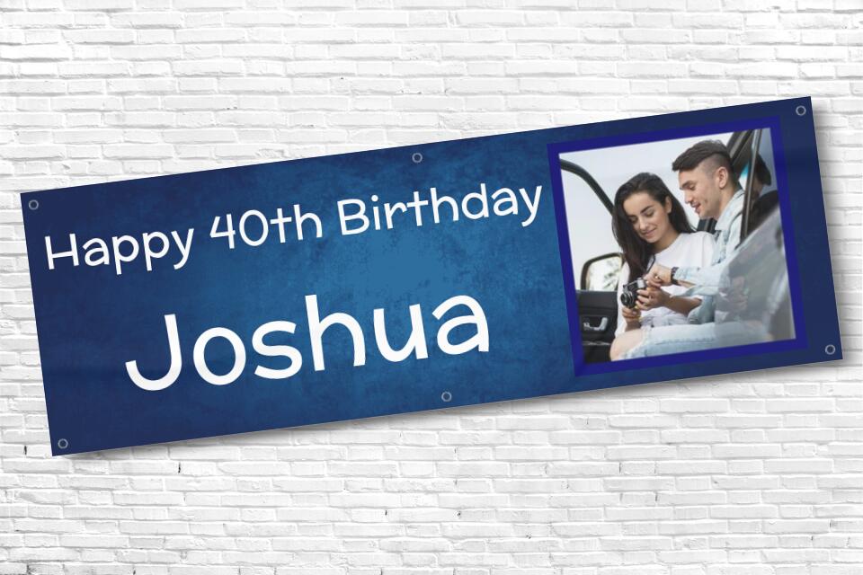 Men's Personalised Blue Cloudy Fade Photo 40th Milestone Birthday Banner