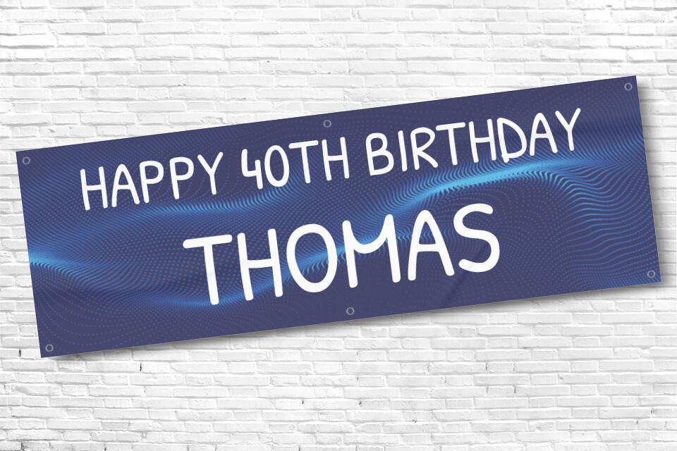 Men's Personalised Blue Wave 40th Milestone Birthday Banner