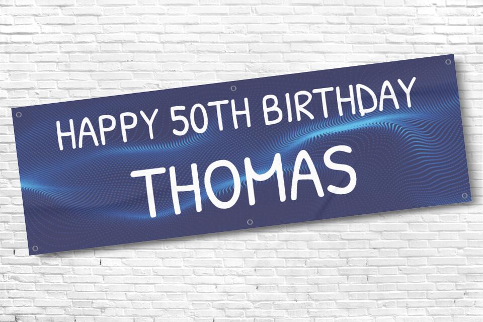Men's Personalised Blue Wave 50th Milestone Birthday Banner