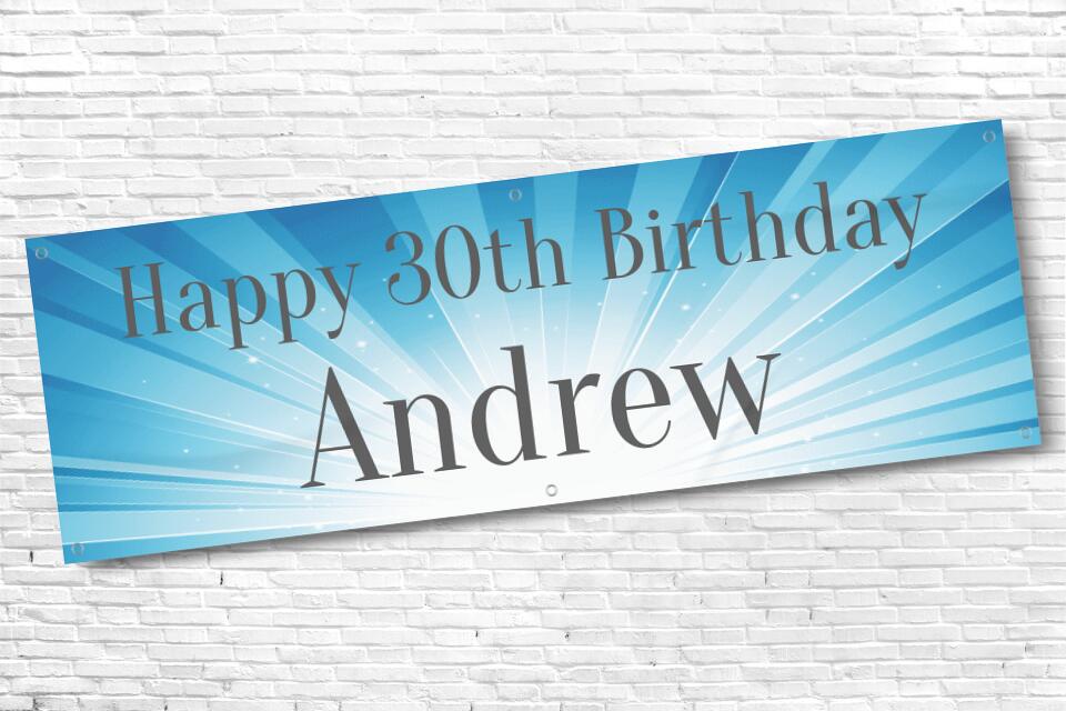 Men's Personalised Bright Blue Beam 30th Milestone Birthday Banner