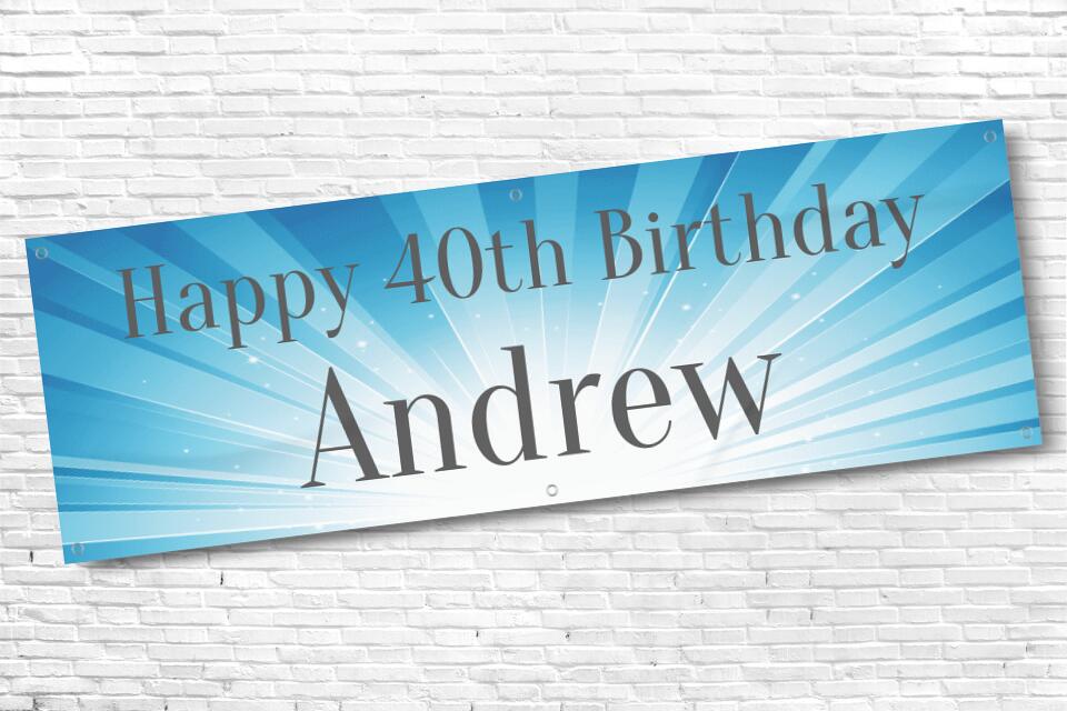 Men's Personalised Bright Blue Beam 40th Milestone Birthday Banner