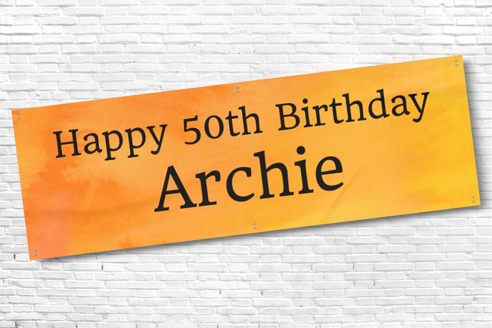 Men's Personalised Orange 50th Milestone Birthday Banner