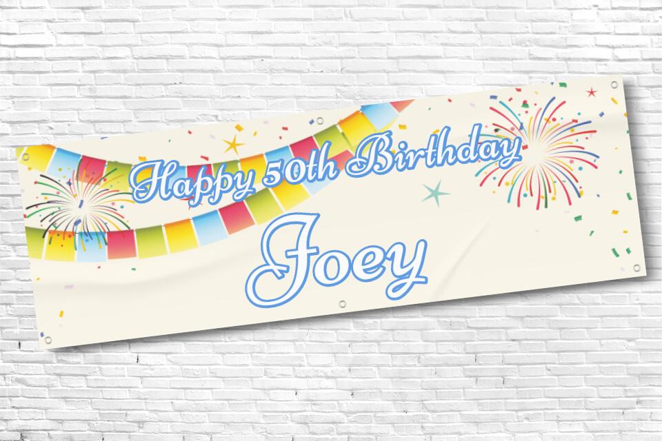 Men's Personalised Rainbow Bunting Firework 50th Milestone Birthday Banner