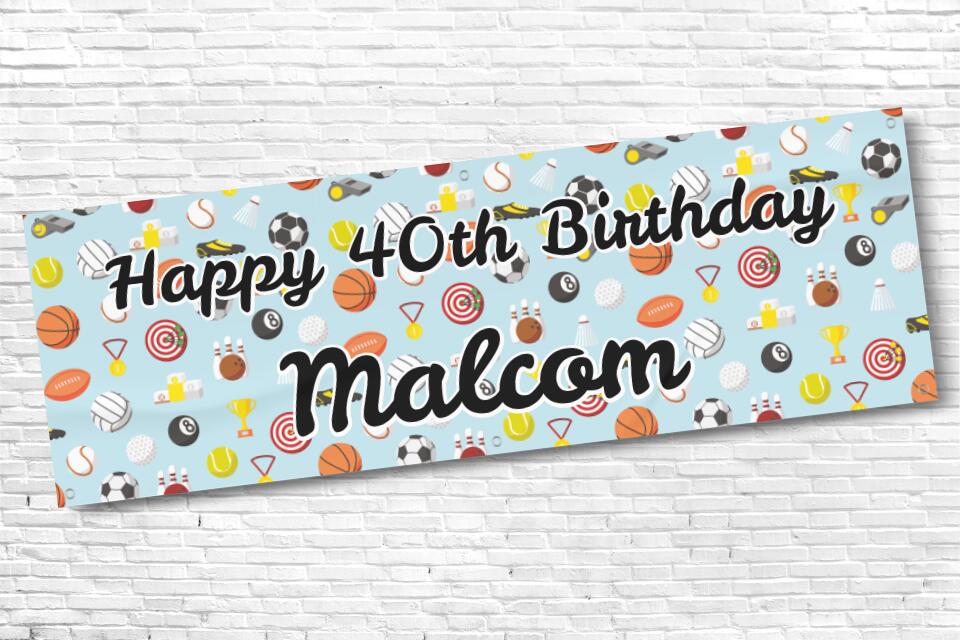 Men's Personalised Sports Balls 40th Milestone Birthday Banner
