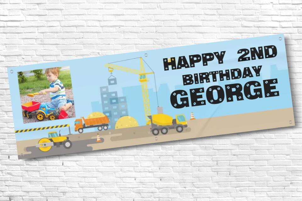 Personalised Boys Birthday Construction Banner with Any Text and Any Photo