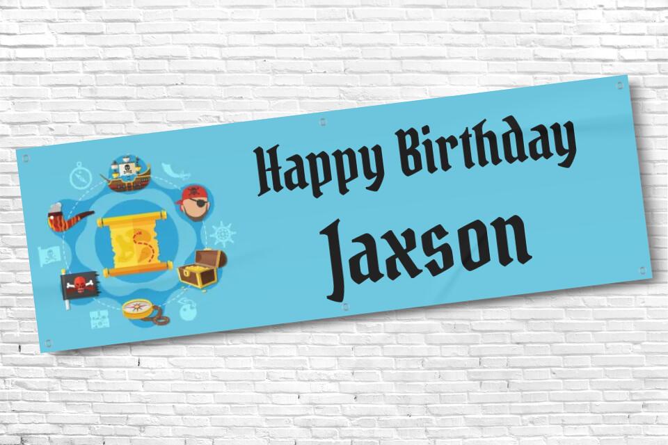 Personalised Boys Pirate Birthday Banner Blue