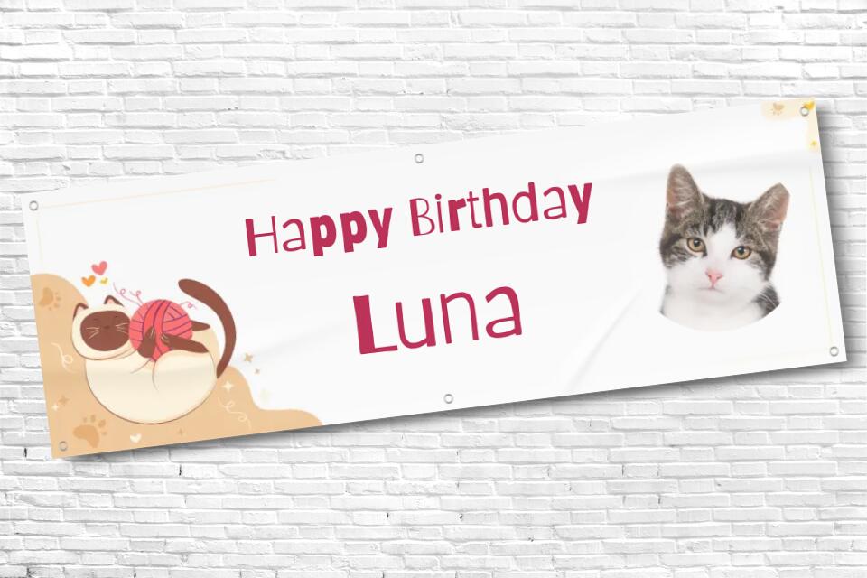 Personalised Cat Birthday Banner with photo