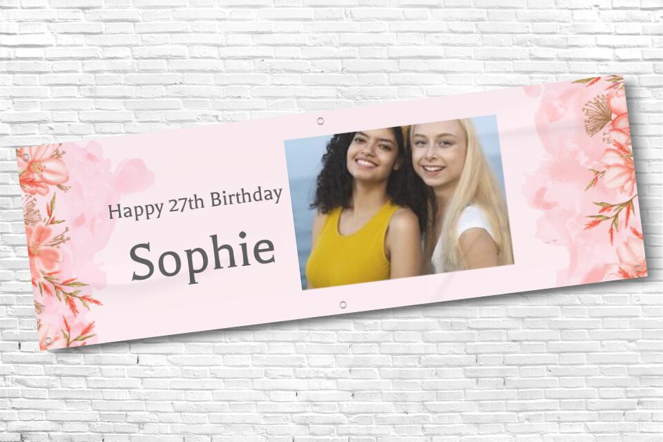 Personalised Floral Valentines Banner with any Photo and Any Text