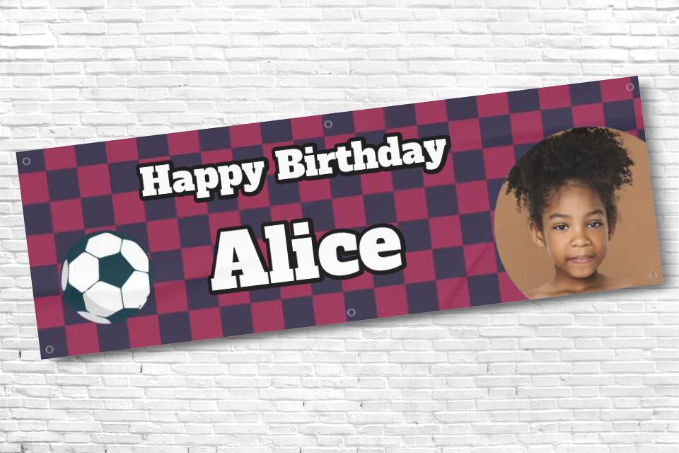 Personalised Football Banner Burgundy and Navy Squares with any photo and text