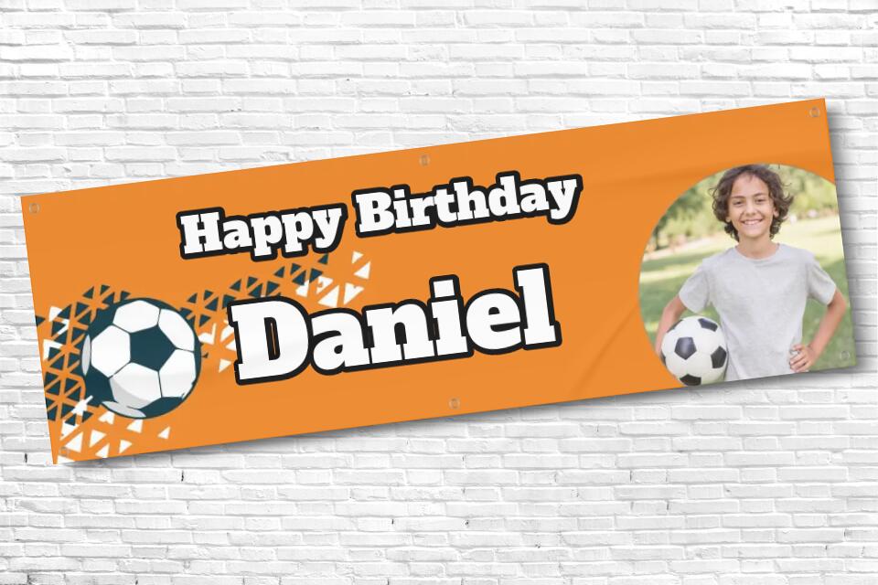 Personalised Football Banner Orange with any photo and text