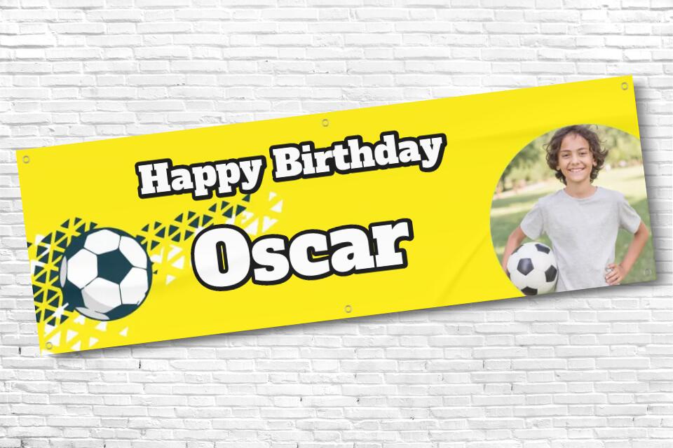 Personalised Football Banner Yellow with any photo and text