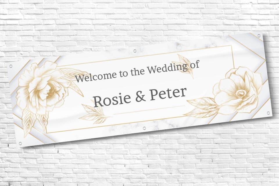 Personalised Gold Line Floral Wedding Banner