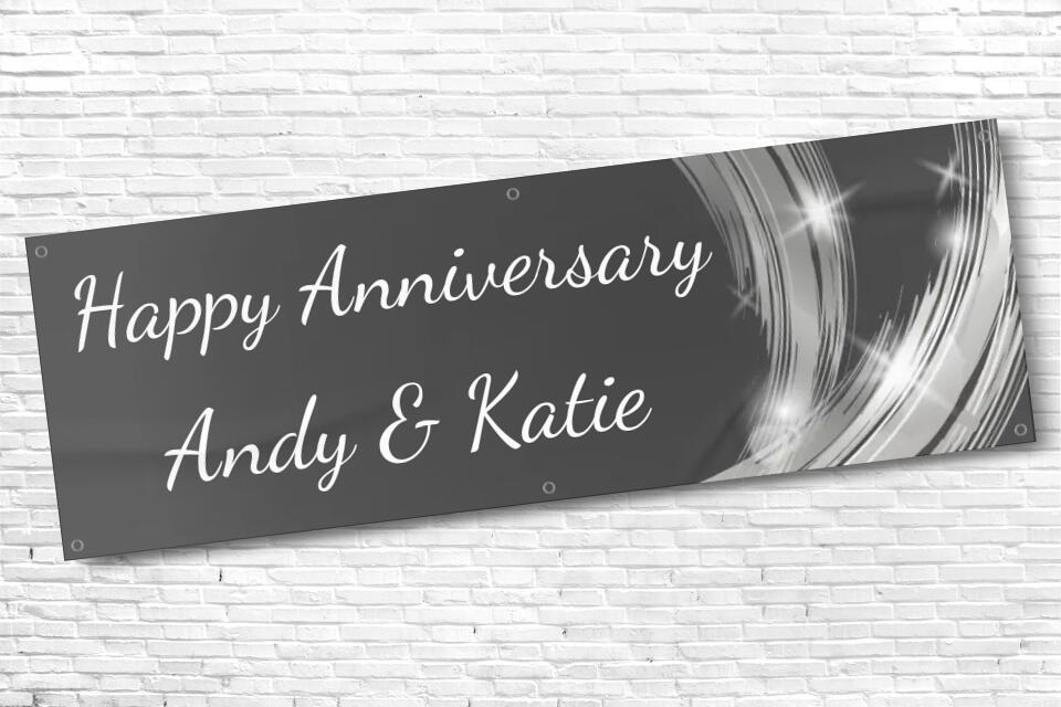 Personalised Grey and silver Anniversary Party Banner with any Text