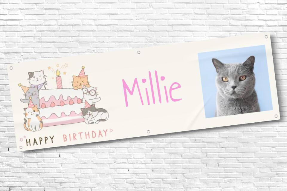 Personalised Party Cat Birthday Banner with photo