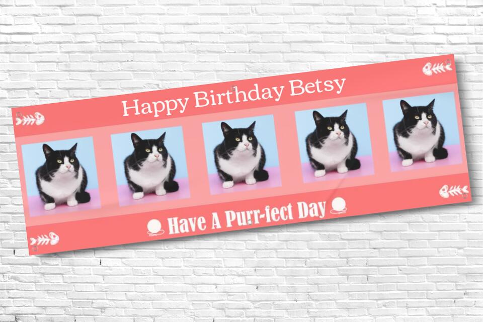 Personalised Pink Cat Birthday Banner with 5 photos