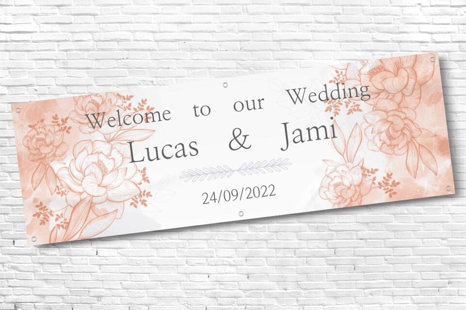 Personalised Rose Gold Floral Date Wedding Banner