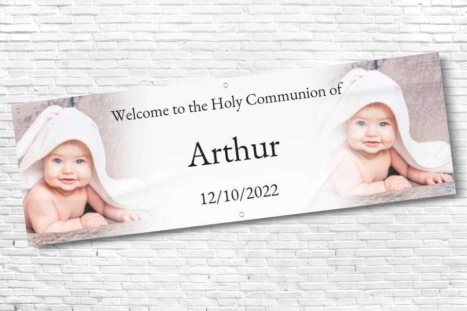 Personalised twin Photo with fade Holy Communion Banner with Black Text
